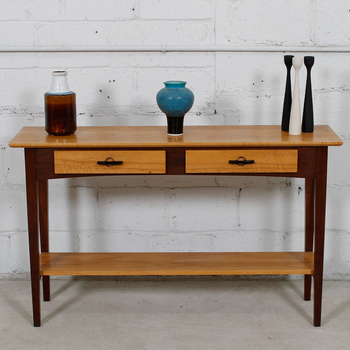 Gorgeous Solid Maple & Cherry, Thin Console / Sofa Table.  A stylish & functional piece that is also perfect for those narrow spaces where nothing else will fit…..