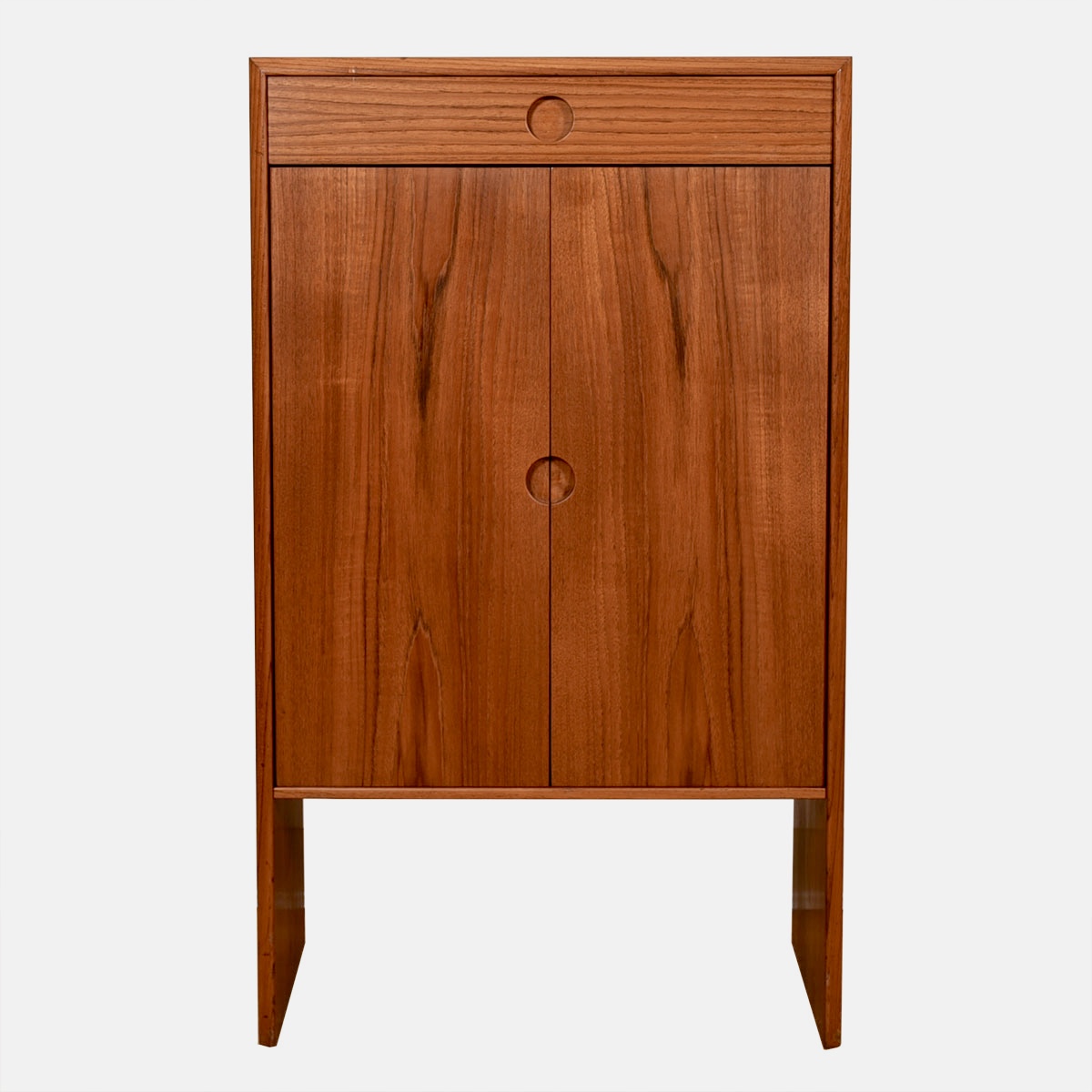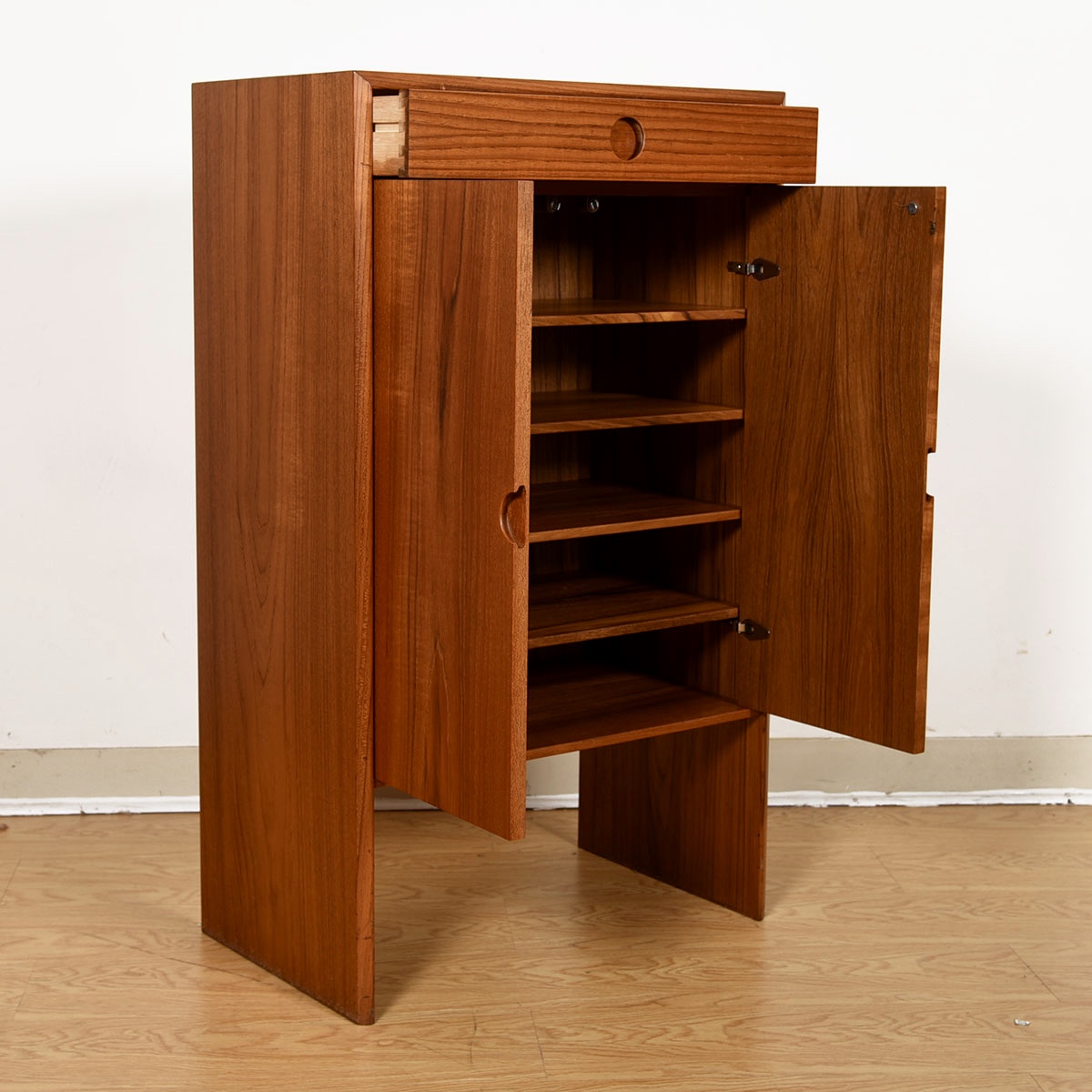 Versatile & Petite — Danish Modern Teak Adjustable Shelf Cabinet w/ Drawer