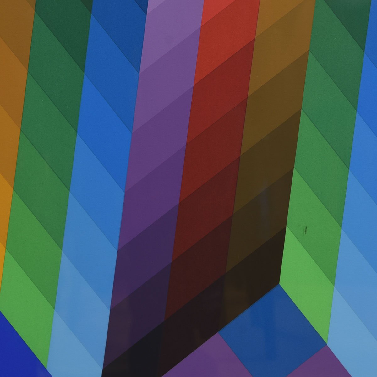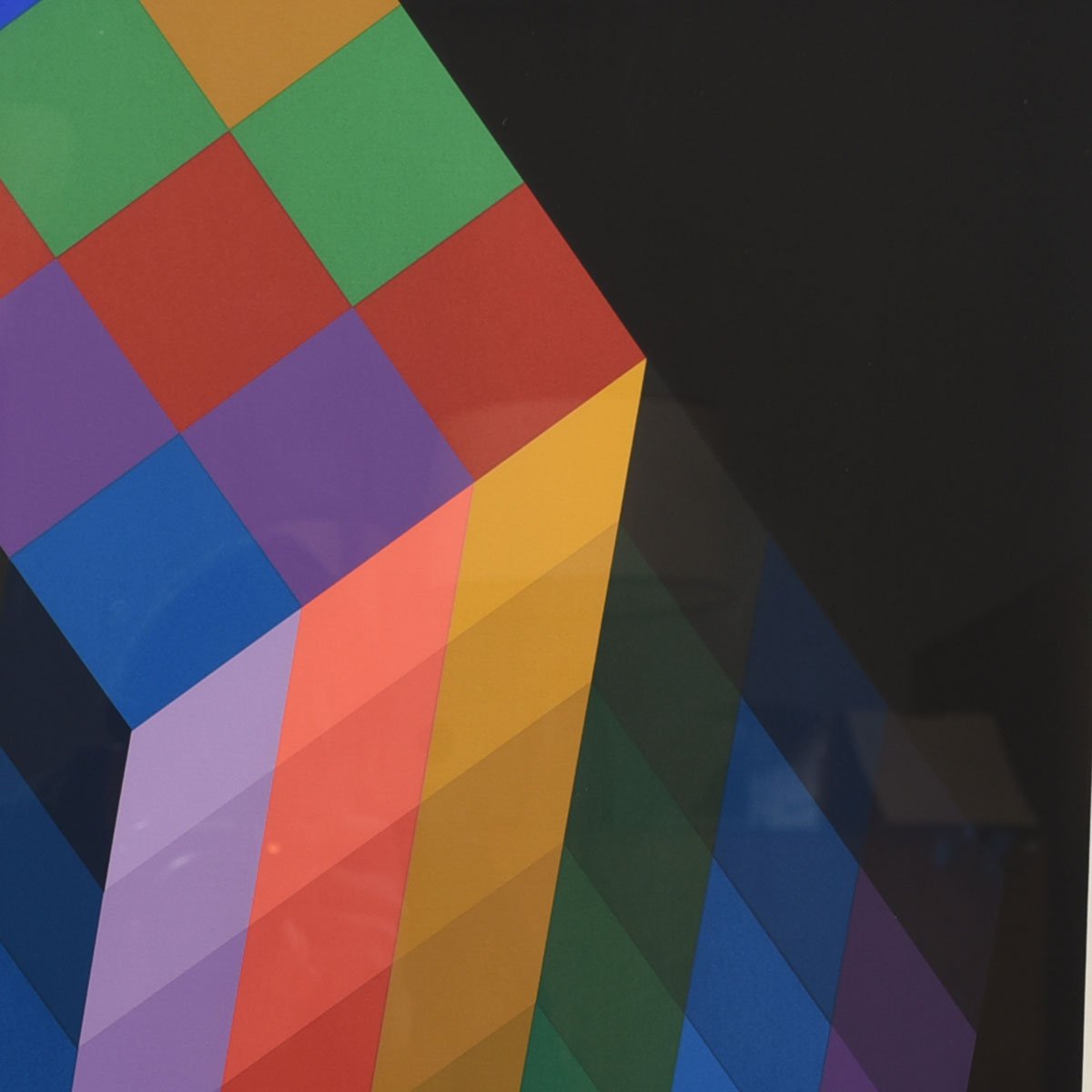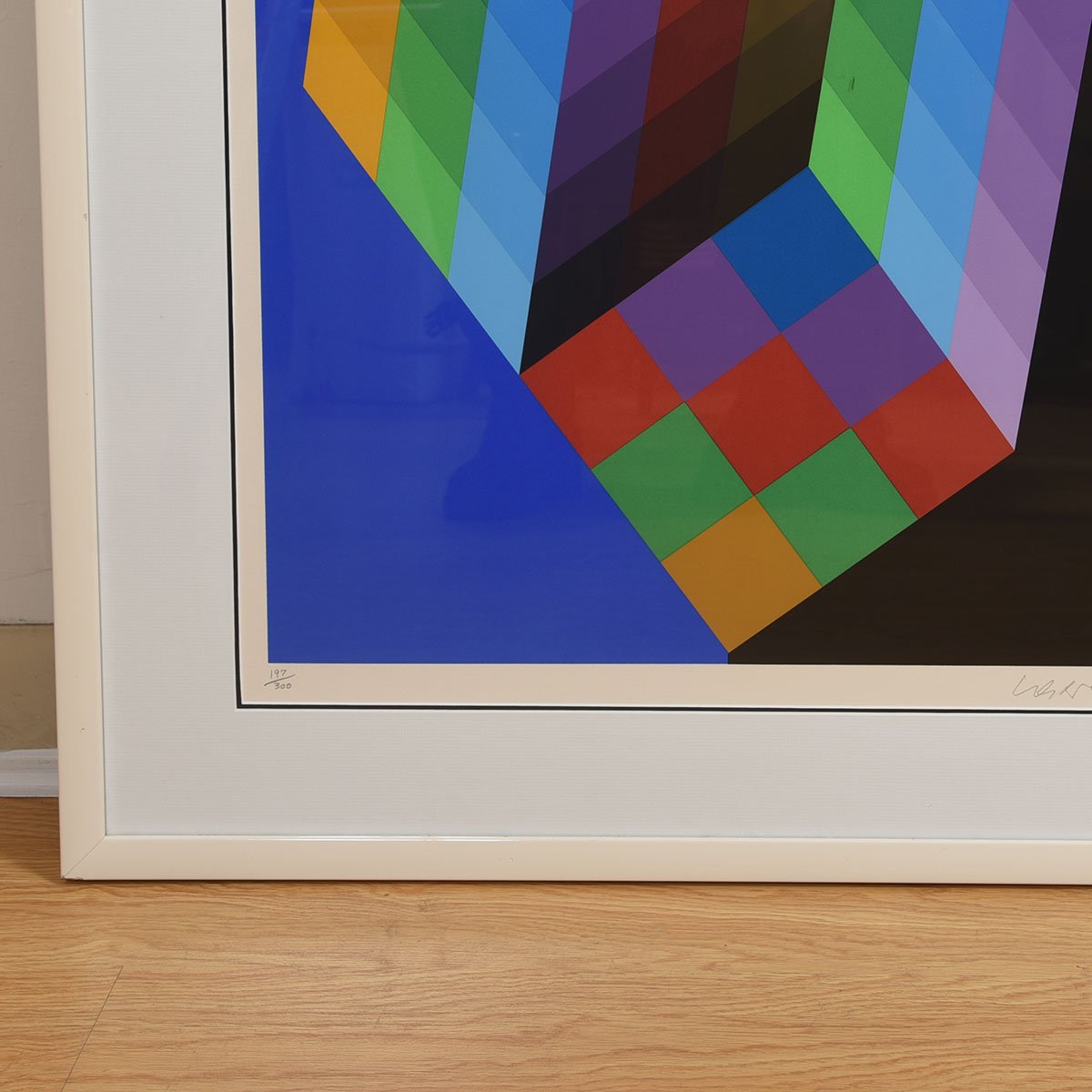 Victor Vasarely was a Hungarian-French artist who is widely regarded as the Father of the Op-Art Movement. This colorful signed screen print is a perfect example.