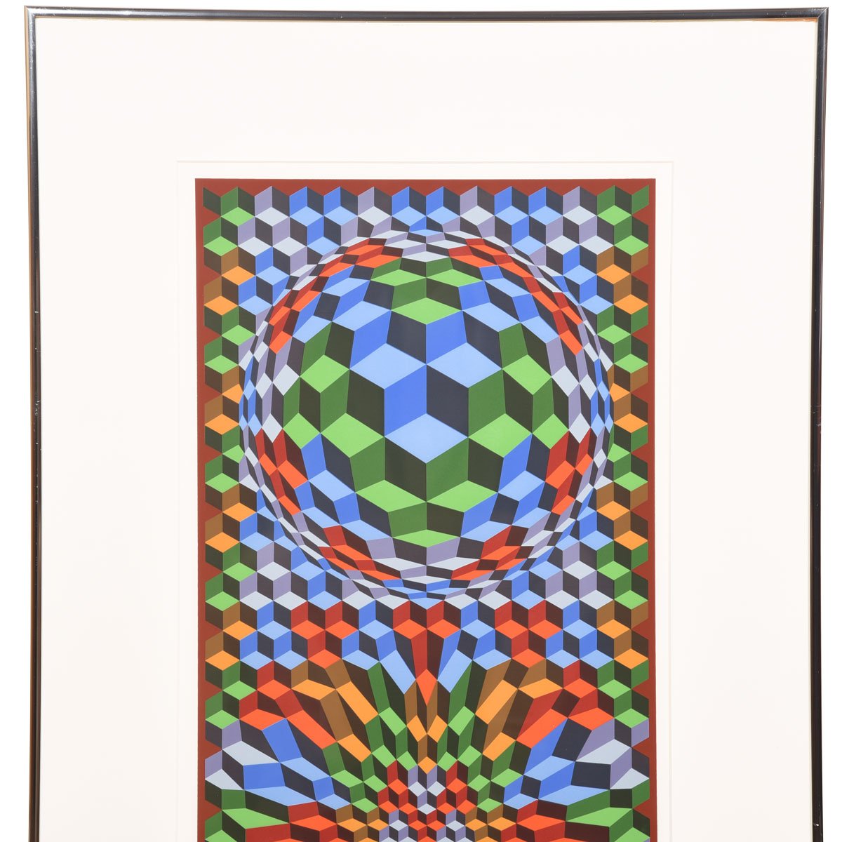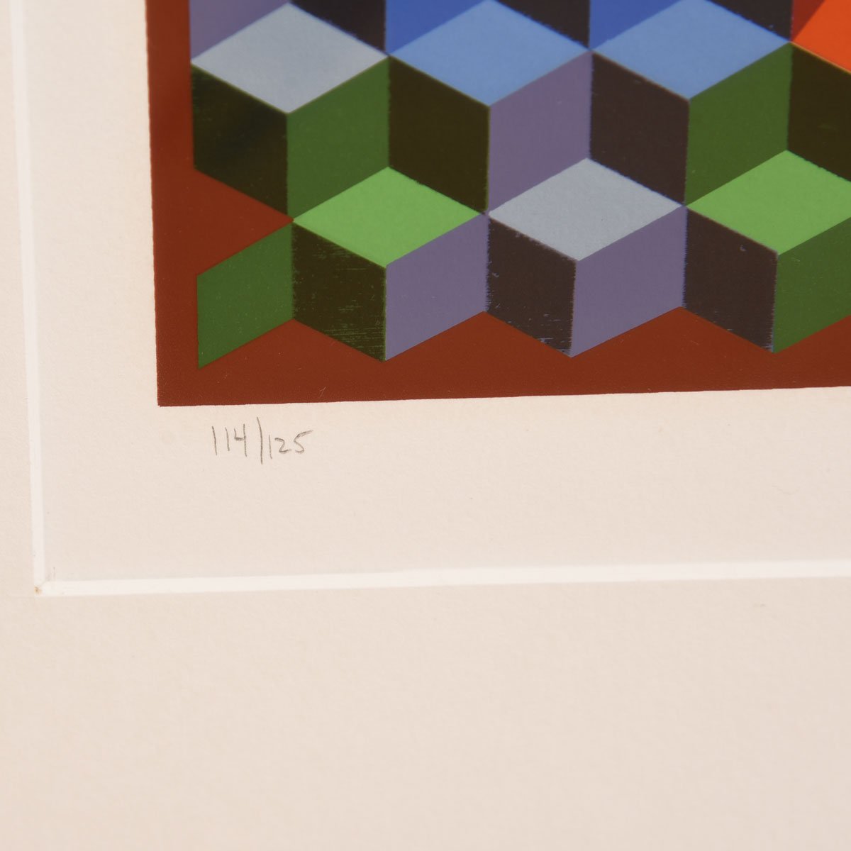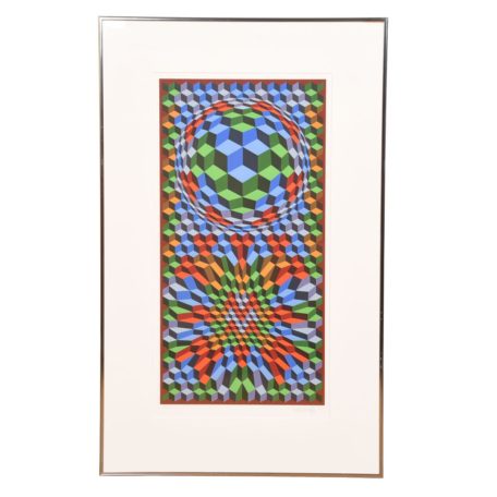 Victor Vasarely was a Hungarian-French artist who is widely regarded as the Father of the Op-Art Movement. This colorful signed screen print is a perfect example.