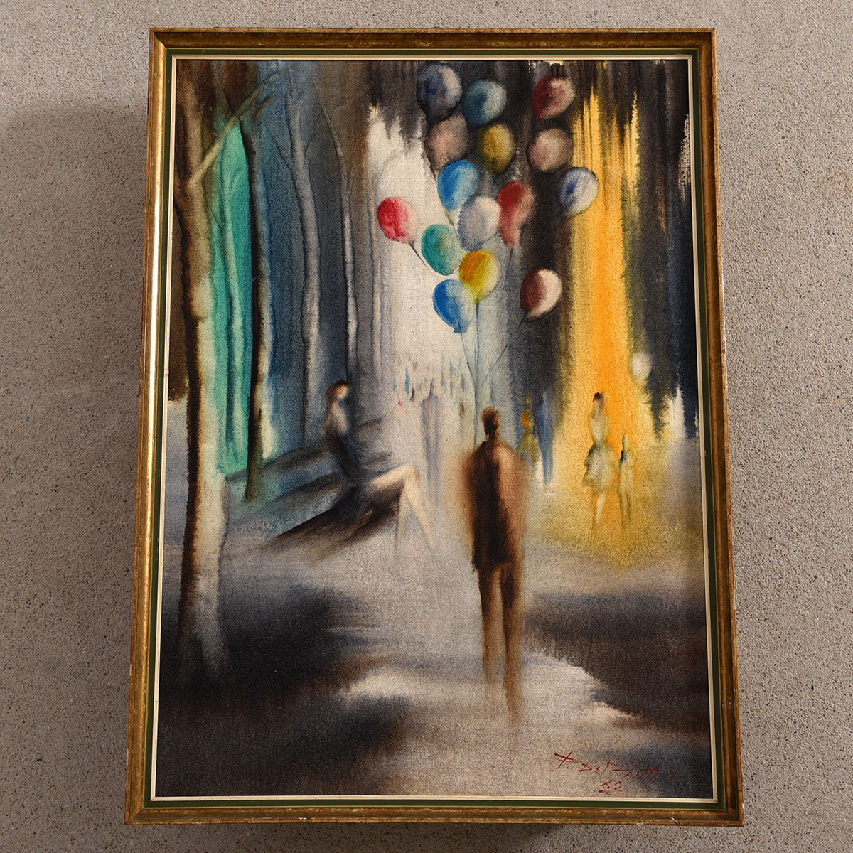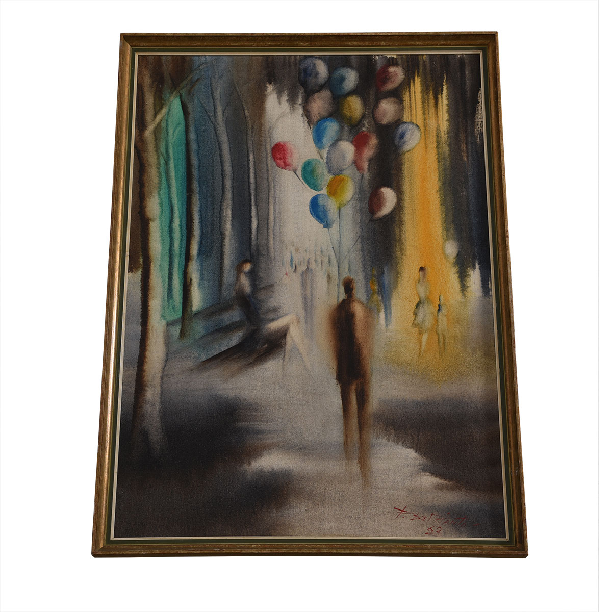 Vintage Man with Balloon Impressionistic Artwork