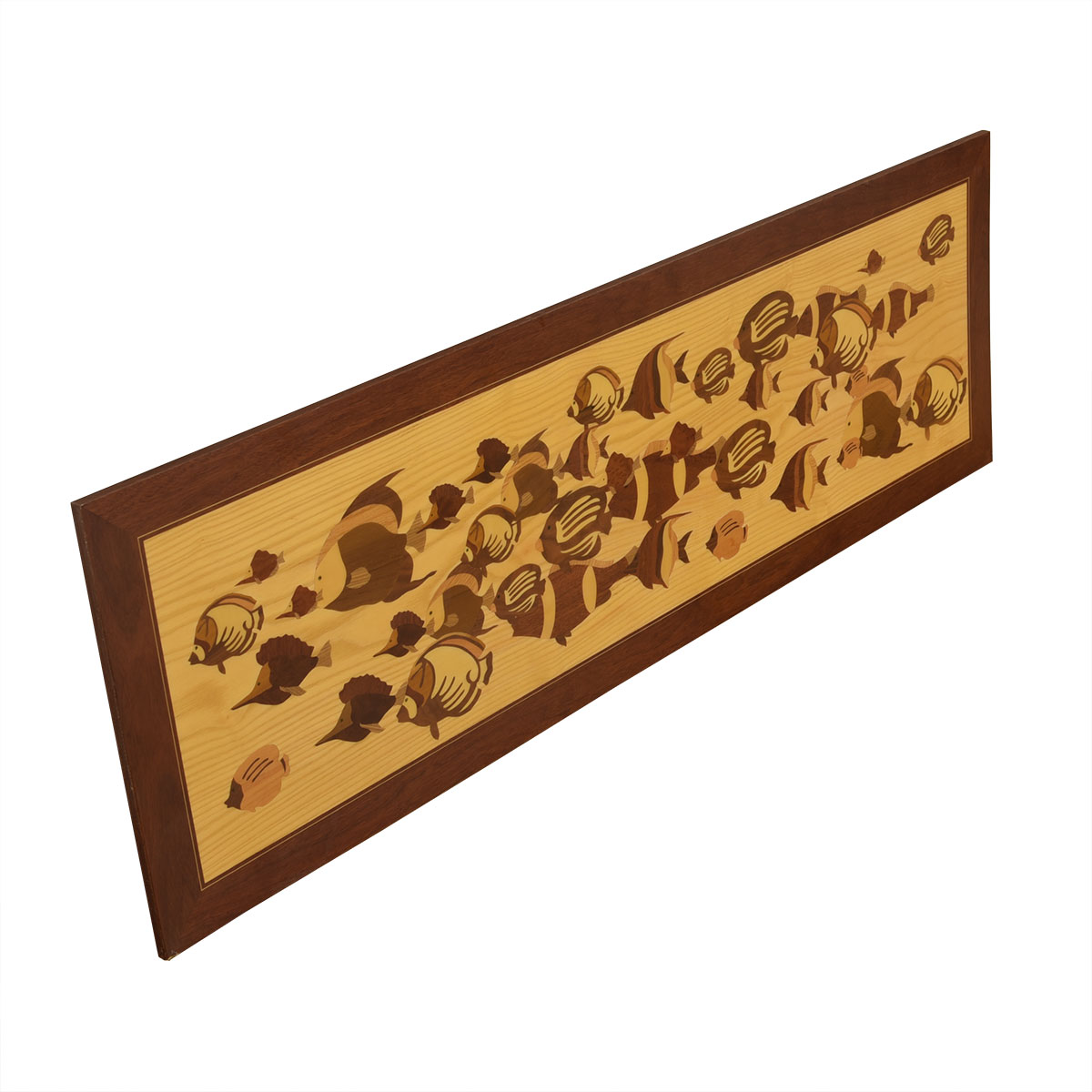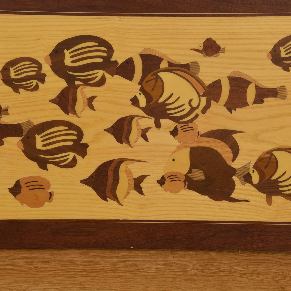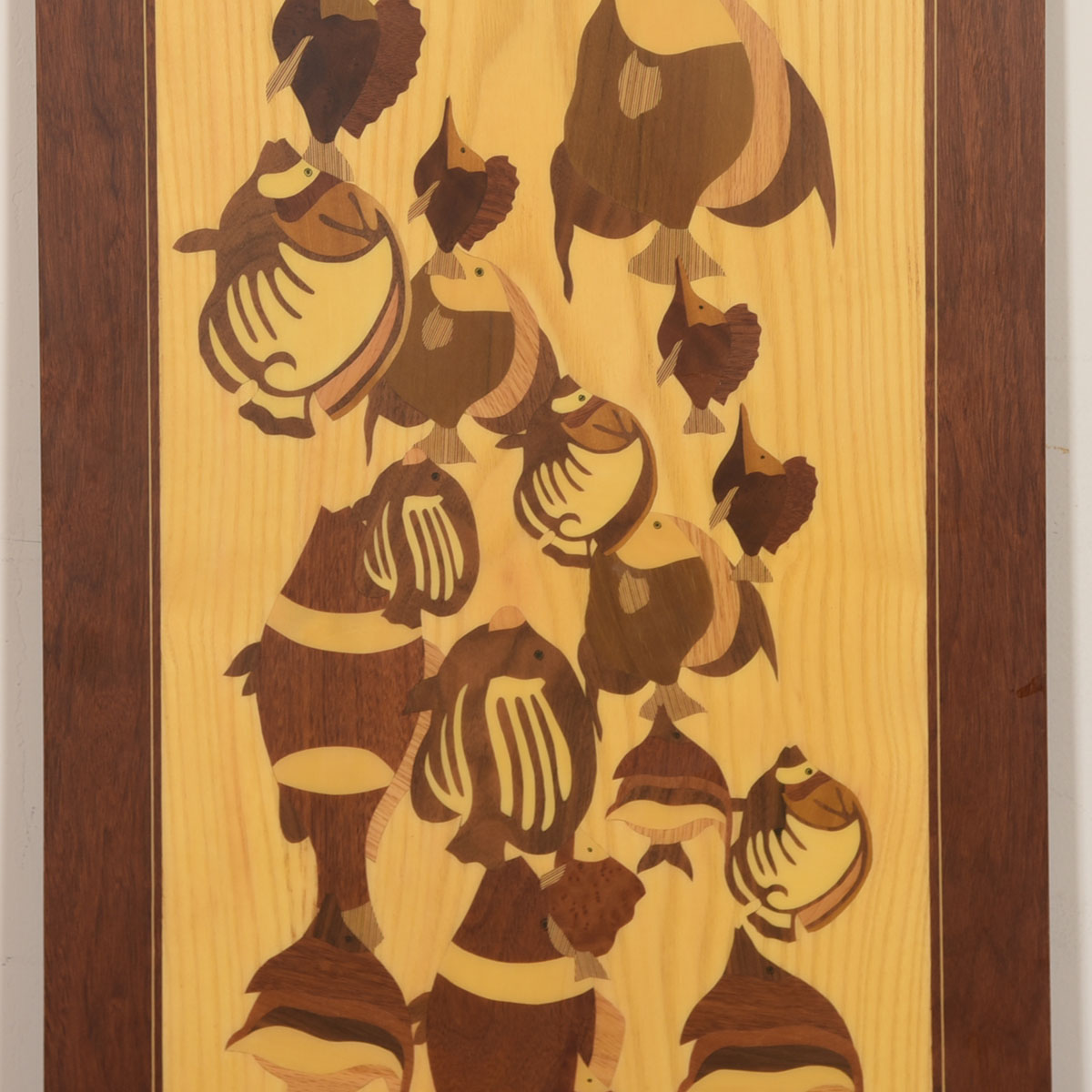 Vintage Wooden Marquetry “Painting” of a School of Fish