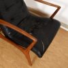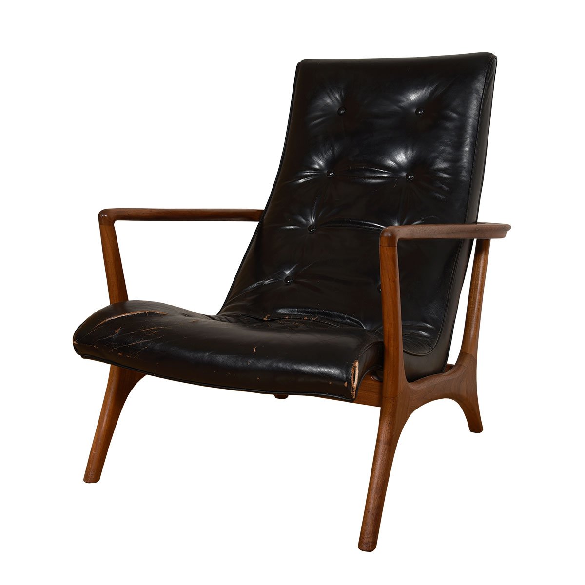 An ultra-stylish walnut frame cradles a black tufted seat but look closely at the photos for the design and proportions that make this such a special chair attributed to American icon Vladimir Kagan. The angle of the back and the knees makes it the ultimate in comfort, as you would expect.