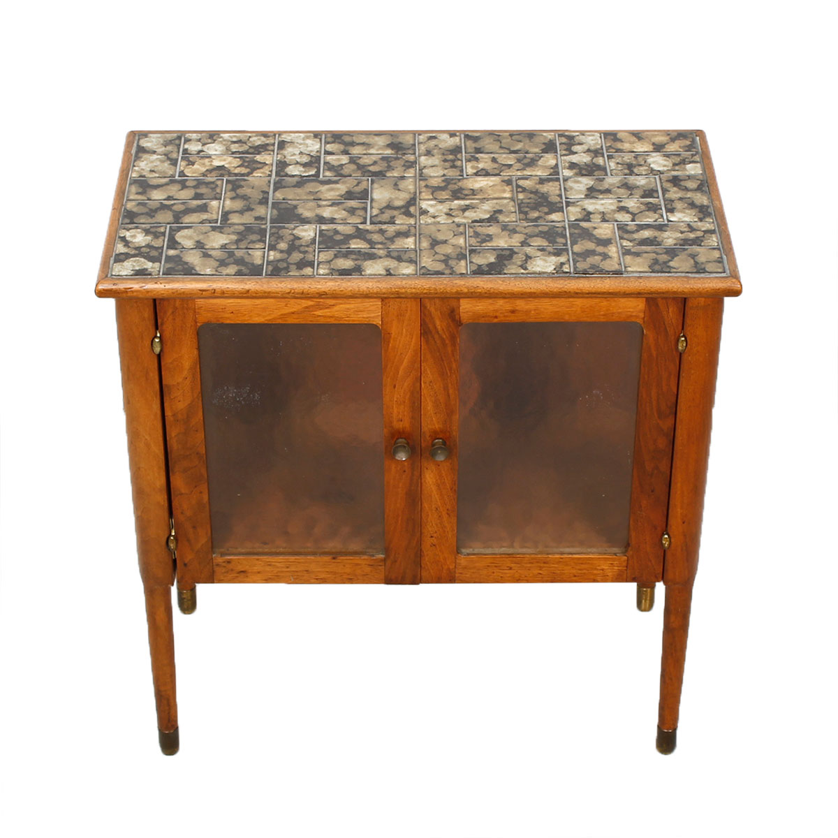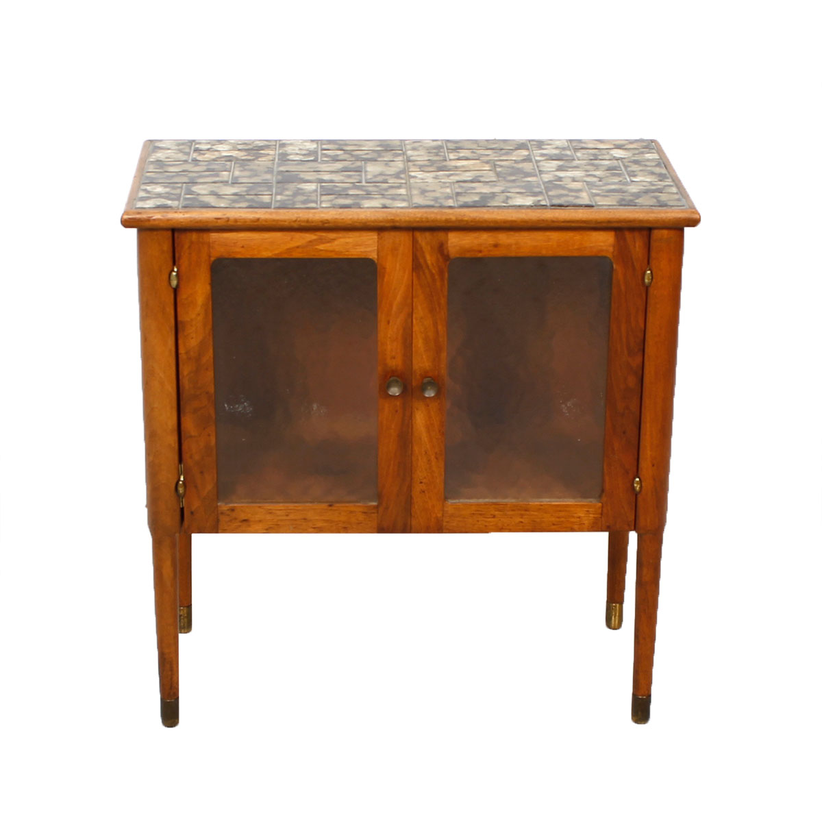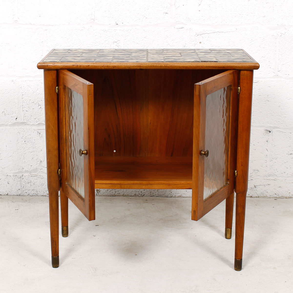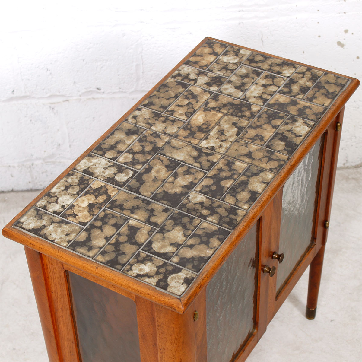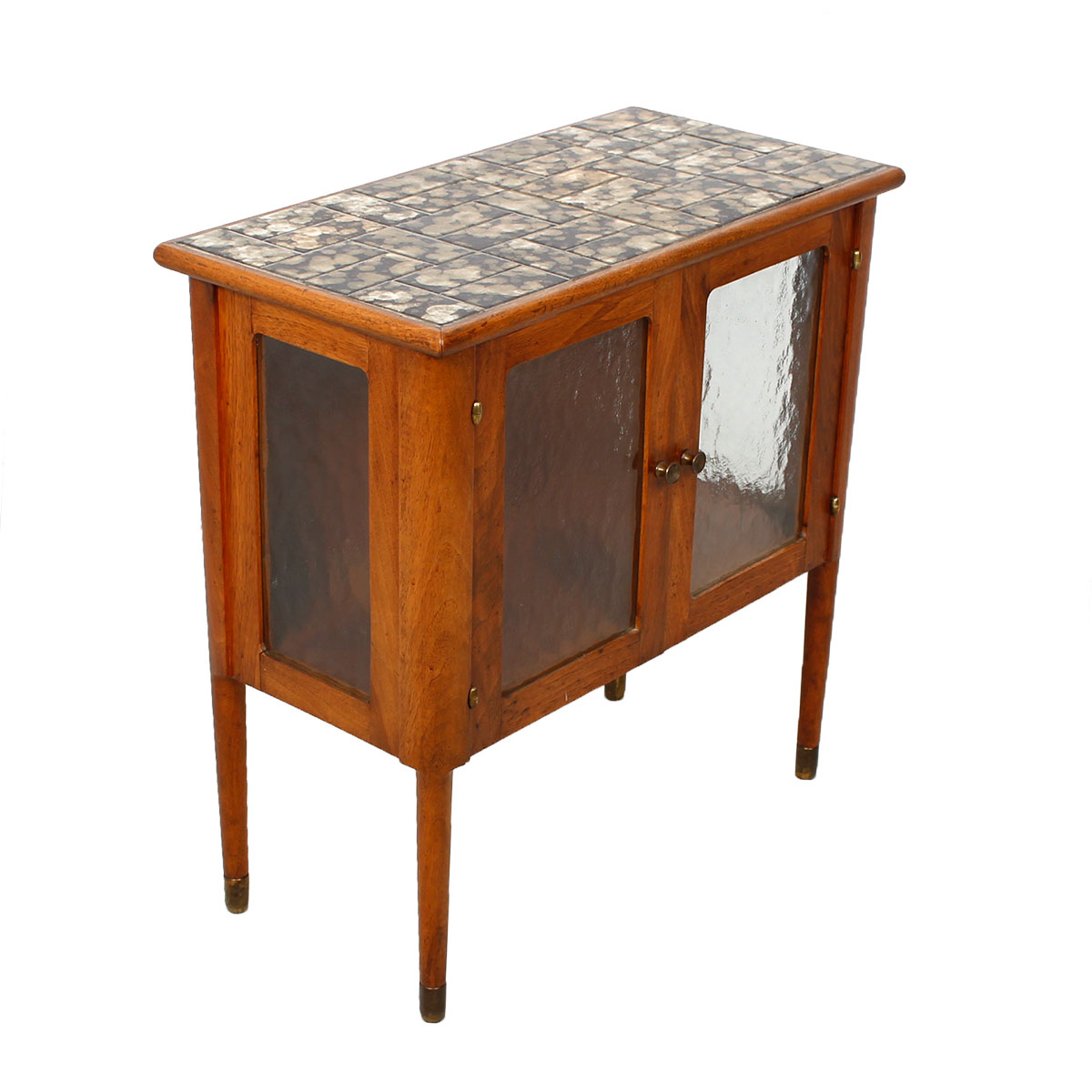 Petite Decorative Tile & Walnut Storage / Bar Cabinet with Glass