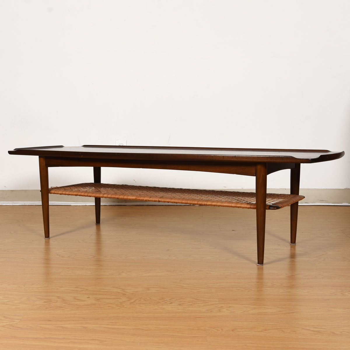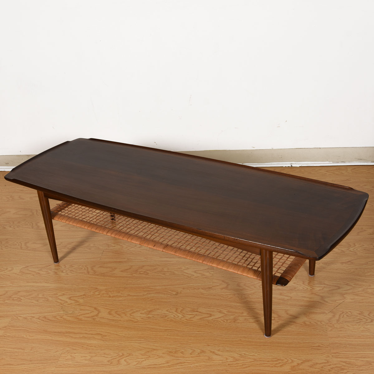 Walnut Danish Modern Coffee Table w/ Cane Shelf