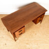 - Overall, the desk has a linear appearance but this is softened by how the table top is constructed — gentle curves on each side and an inset of walnut on each short end.