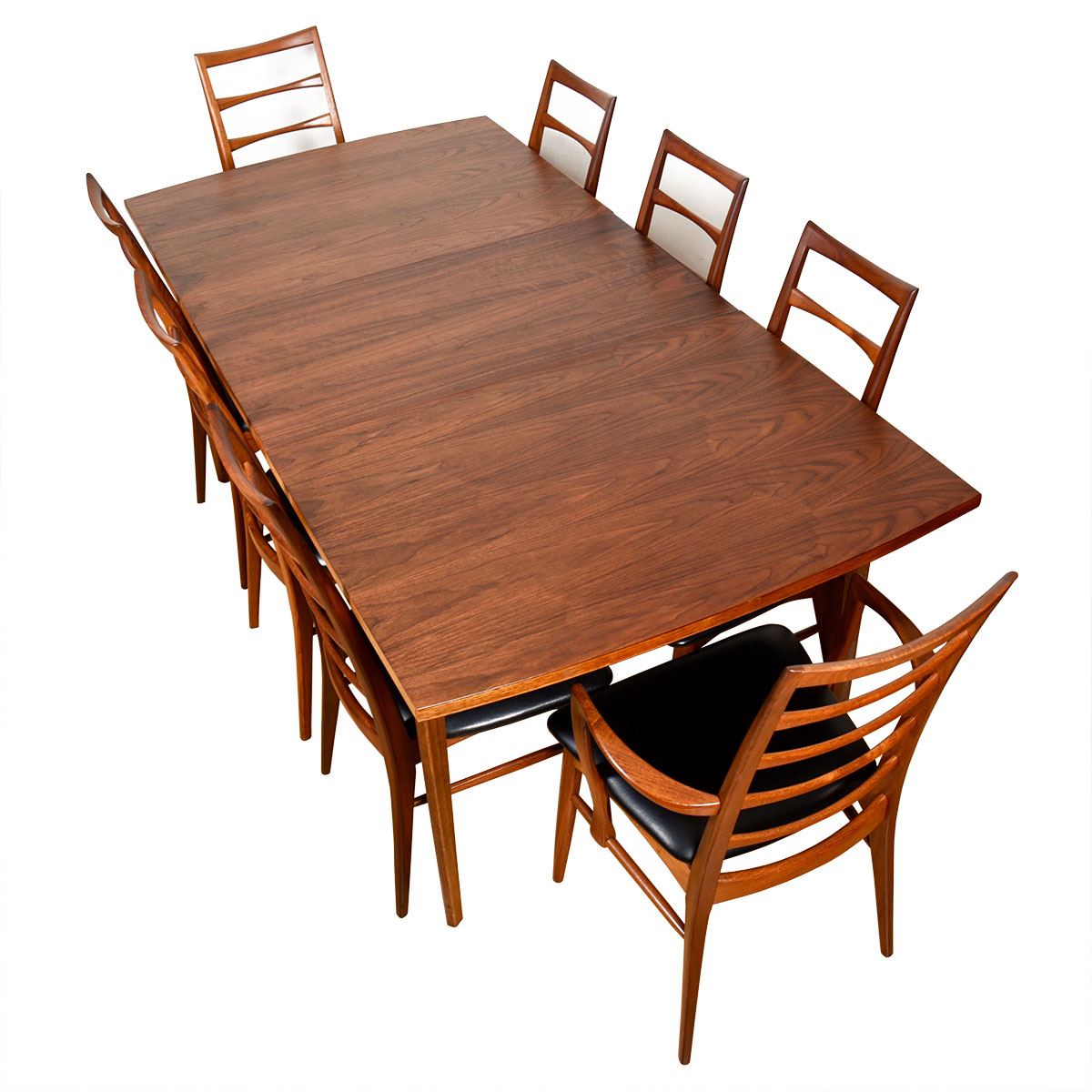 Walnut Mid-Century Modern Concave Edge Expanding Dining Table