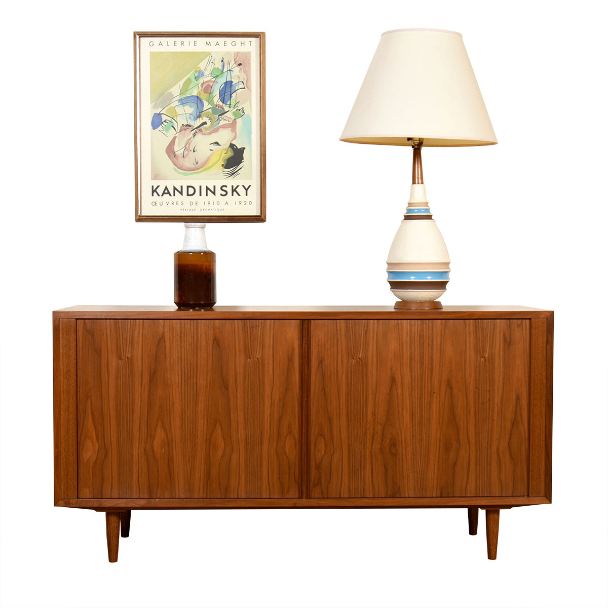 - Condo-sized, compact 54.5″ Danish Modern teak credenza / cabinet