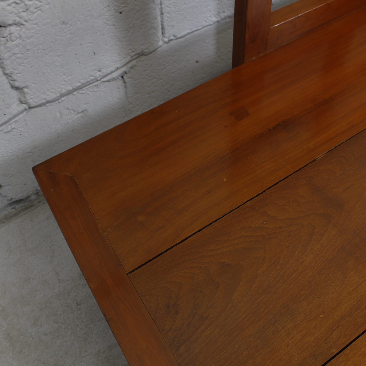 Here is a gorgeous solid teak daybed frame, ready for upholstered cushions to match your décor. This piece is a marriage of minimalist styles – the backrest hints at an Asian influence while the legs offer Danish Flair reminiscent of Hans Wegner. The lines are simple and elegant making it perfect for many different furnishings. The size is impressive – a truly beautiful way to provide seating and accommodate guests in your home.
