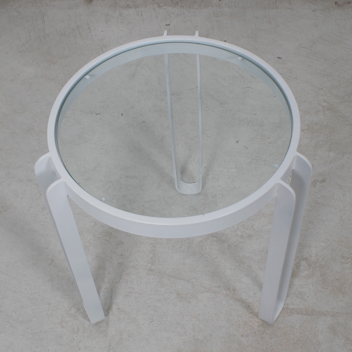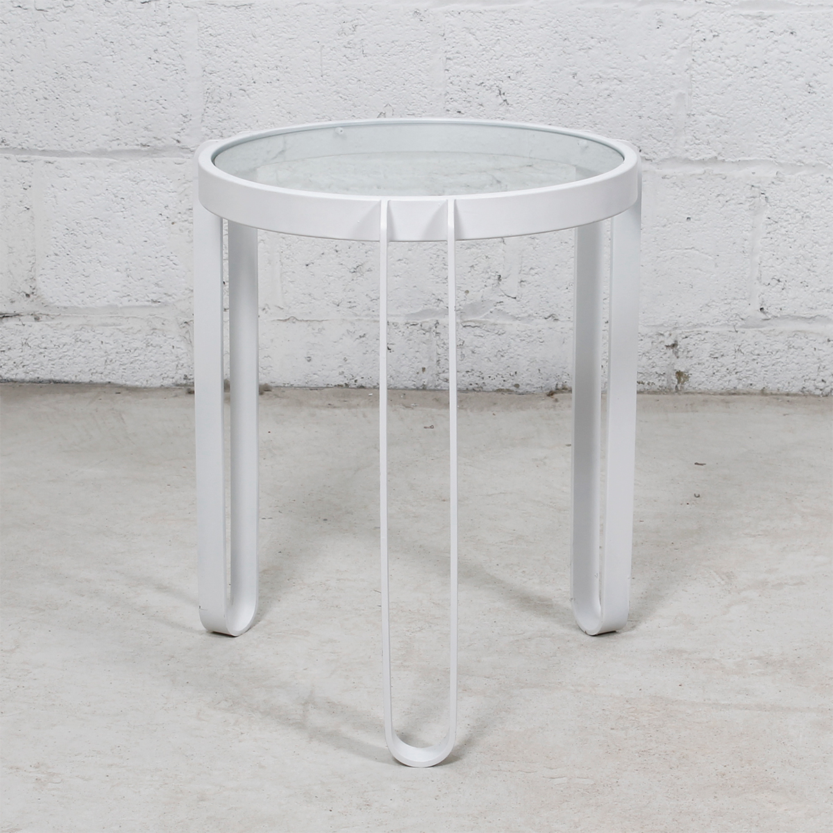 » » » Round White Cast Iron Side Table w/ Glass Top