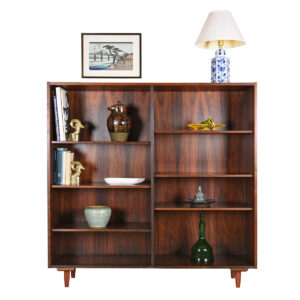 Unique + Low — Danish Modern Rosewood Corner Bookshelf w. Adjustable Shelves