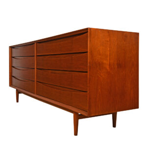 Danish Modern Teak Gents Chest | Dresser w Tambour Door + Lots of Drawers!