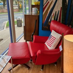Danish Leather Club Chair in Deep Burgundy w. Rosewood Legs